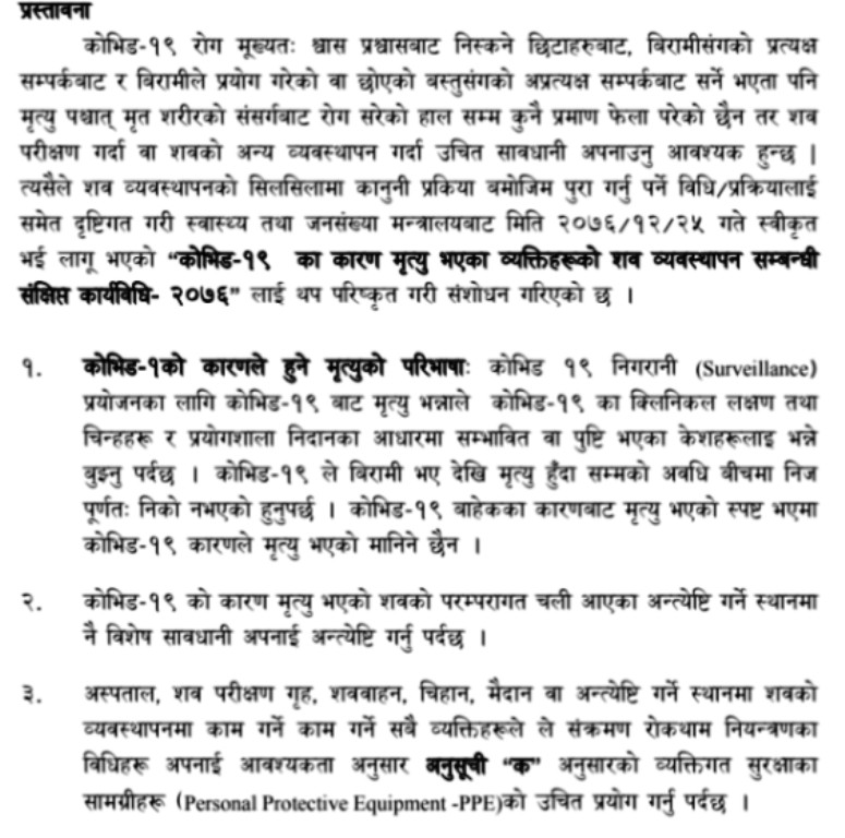 रिपोर्ट पोजेटिभ देखिए पनि अन्य रोगबाट मृत्यृ भएमा कोरोनाबाट ज्यान गएको नमानिने
