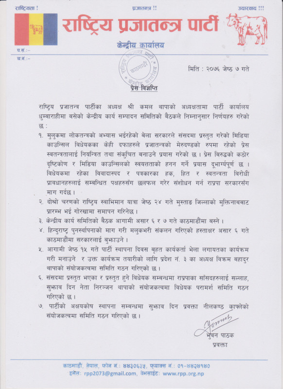 राप्रपा : प्रेस विज्ञप्ति