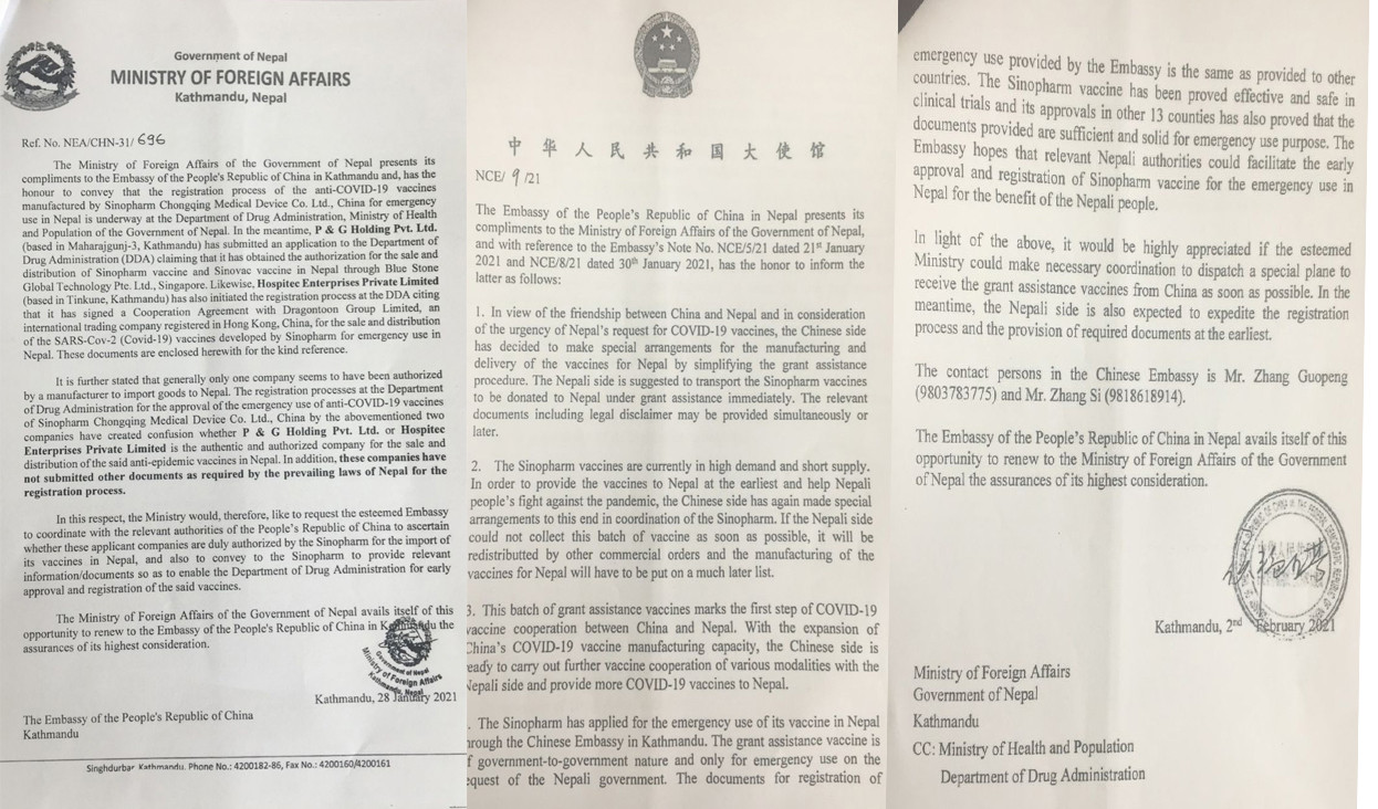 चिनियाँ खोपका विषयमा परराष्ट्र मन्त्रालय र दूतावासबीच पत्र जुहारी, तत्काल खोप लैजान ‘चेतावनी’
