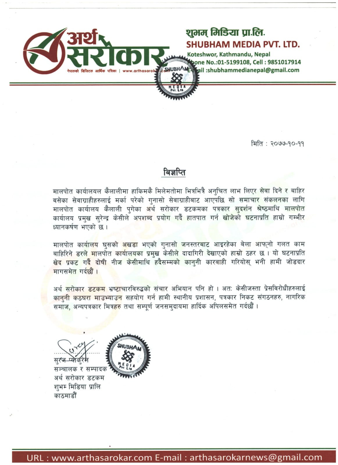 पत्रकारमाथि कैलाली मालपोत हाकिमको दुर्व्यवहार, कारवाहीको माग