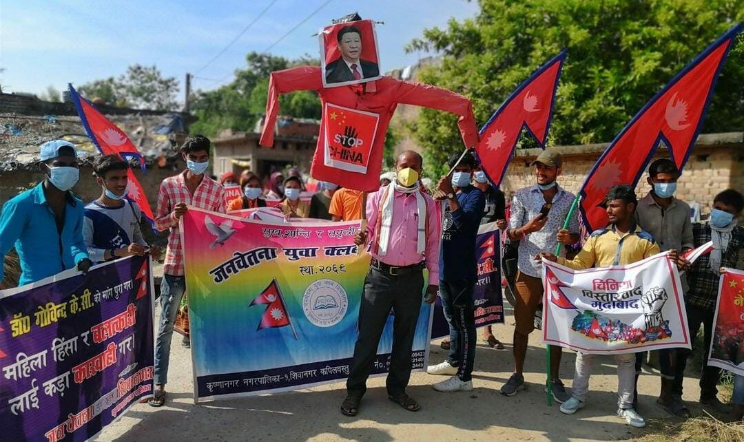 भूमी अतिक्रमणको बिरोधमा चिनियाँ राष्ट्रपतिको पुत्ला दहन